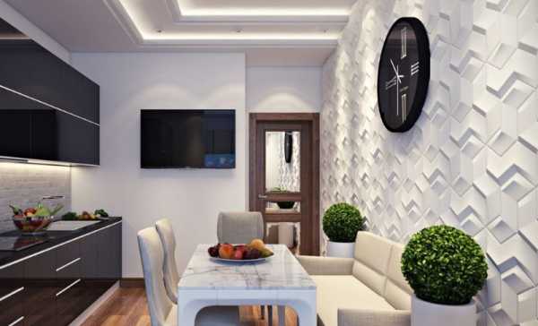 Не редко данная комната, выступает в качестве маленькой гостиной, где неожиданно пришедшие в гости друзья могут составить вам компанию в приготовлении нехитрого блюда для приятного времяпровождения.