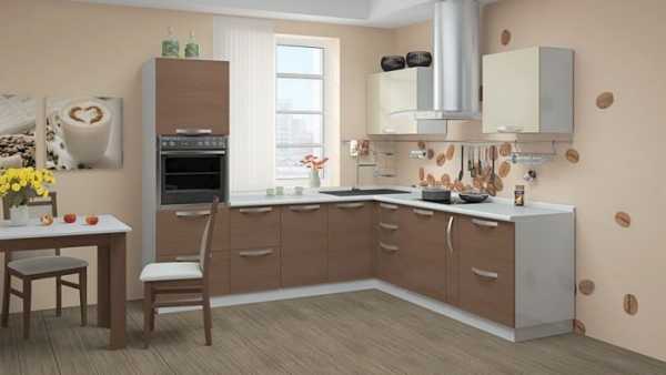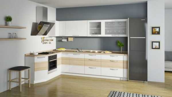 - Г-образная. При такой планировке, все функциональные зоны находятся под рукой. Обязательно учтите моменты открывания дверок и ящиков, что бы они по минимуму мешали друг другу.