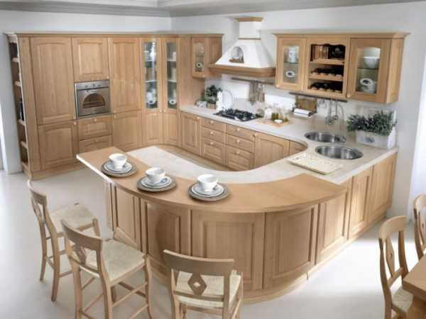 - Островная. Такую кухню категорически нельзя использовать в маленьких кухонных помещениях.
