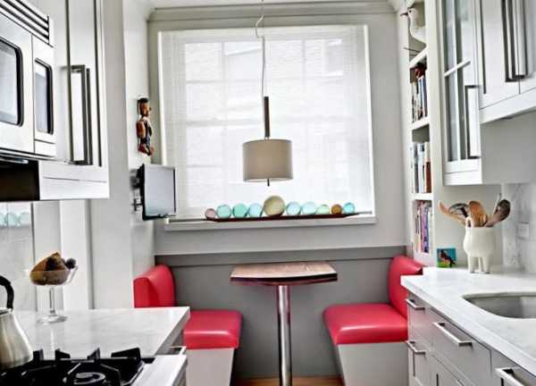 Интересное сочетание белого и красного цветов для кухни небольшого размера