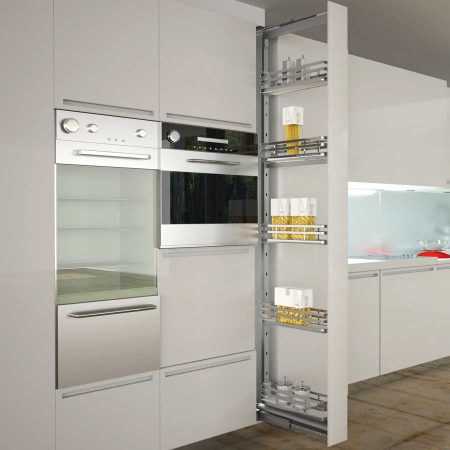 При правильно сборке, торцы гарнитуры не видны, но если вдруг так случилось, что не удалось скрыть, то можно их припрятать специальными шкафчиками — пеналами.