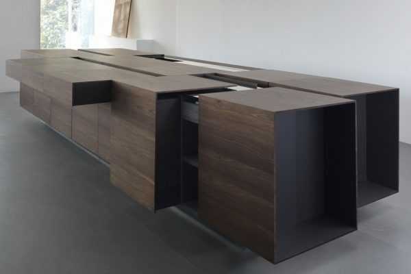 Очевидно, что это потребует большого количества места, но не в случае с проектом под названием TheCut Алессандро Изола. Данная кухня является настраиваемой. Она состоит из центральной столешницы, потолочных шкафов и встроенного в стену отдела. Всё это выполнено в очень простом и элегантном стиле.