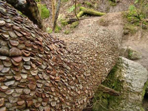 Каждый желающий мог втиснуть монету в дерево на удачу.