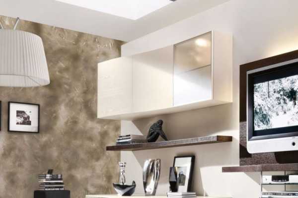 Разнообразные полочки, являются очень распространенным вариантом декора. Их можно заставить книгами, рамками с фотографиями, украсить цветочными композициями, статуэтками или удобно разместить на них различную аппаратуру.