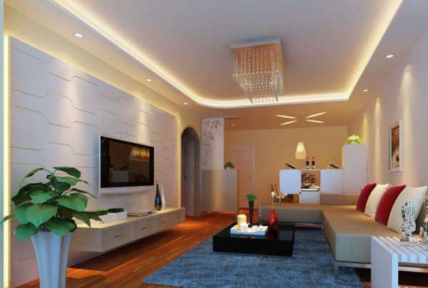 Пример многоуровневой ниши из гипсокартона под телевизорПри появлении идеи сделать нишу для телевизора в гостиной или в зале, следует: