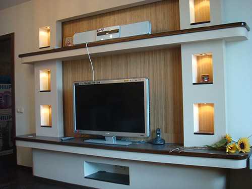 Ниша под телевизор из гипсокартона своими руками с подсветкой: интерьер, фото, видео