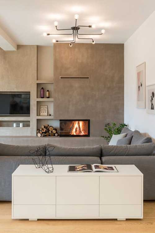 Телевизор в нише, в сочетании с электрокамином, биокамином или фальш-камином, смотрится очень красиво, задает интерьеру квартиры, загородного дома или дачи, нужный настрой и делает атмосферу намного комфортнее и уютнее.