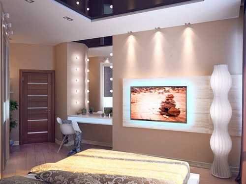 Если телевизор будет располагаться в нише из гипсокартона в спальне, тогда: