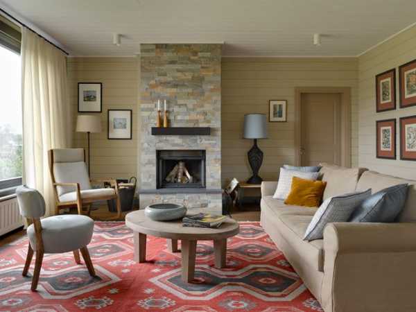 Для облицовки стен в норвежском доме великолепно подходит штукатурка в светлых тонах. Альтернативный вариант – отделка вертикальных поверхностей панелями из дерева. Такое решение сделает интерьер более уютным и камерным.