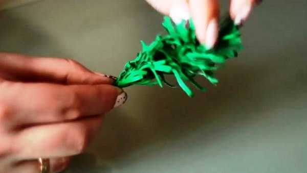 9. Одеваем её на бумажную бахрому и начинаем заворачивать проволоку в бумагу, постепенно спускаясь вниз.