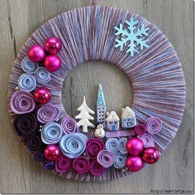 Если вам пришла хорошая идея новогоднего венка из фетра, тогда скорее за работу. Сделав венок из этого материала, а также различных тканей и нитей, можно удивить кого угодно. Вариантам нет предела.