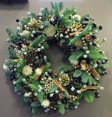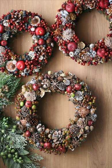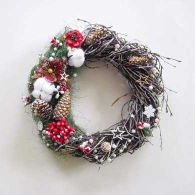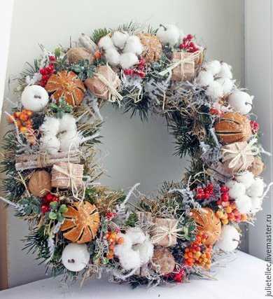 Новогодний венок, прикрепленный снаружи входной двери, приглашает в гости, лежащий на столе говорит о радушии хозяев, приветствующий прохожих из окна или витрины радует глаз и поднимает настроение.