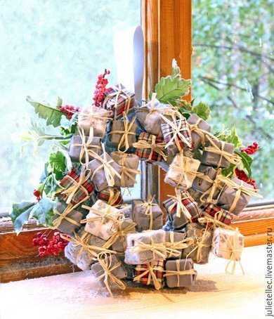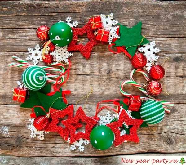 Кто же не любит сладости? Их любят все, поэтому такой новогодний венок будет по душе каждому. Особенно в праздничный период.