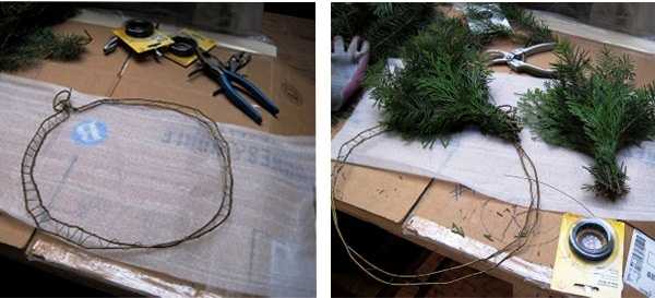 Предлагаем вашему вниманию маленький мастер-класс по созданию каркаса для венка из елки.