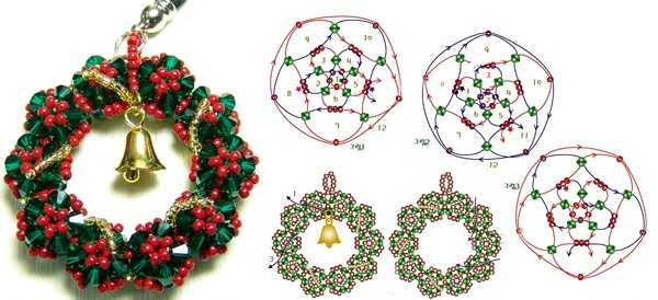 Люди, занимающиеся плетением всяческих изделий из бисера, знают что из него можно сделать что угодно. Так вот и новогодний венок — не исключение. Потребуется немного времени и сноровки, и в итоге, у вас получится очень красивое изделие, которое можно повесить куда угодно. Давайте попробуем сделать.