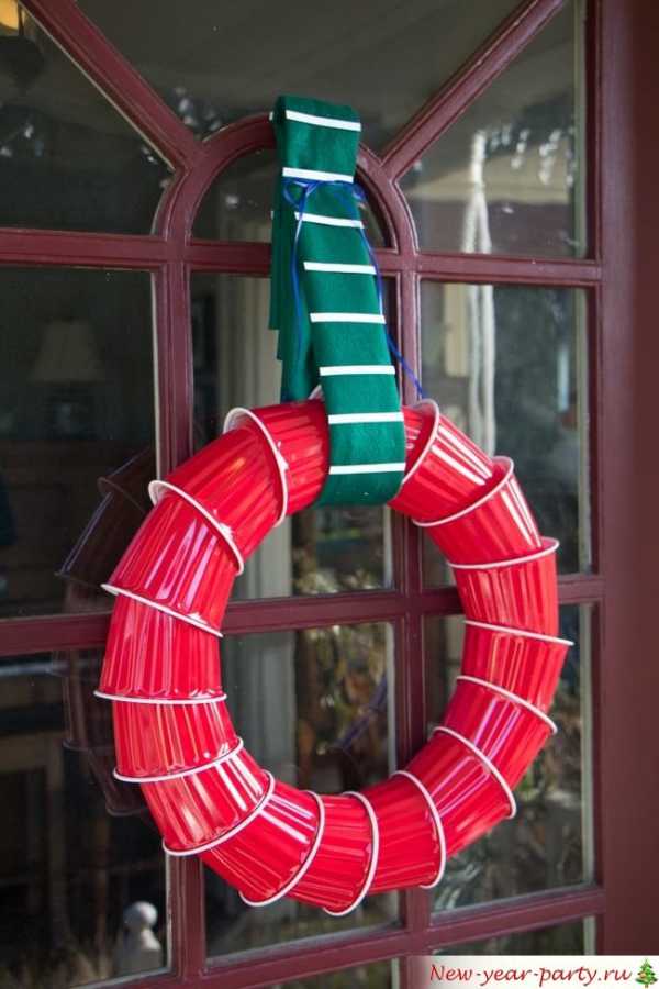 Создать новогодний венок, такой, какого нет ни у кого, не сложно. Имея небольшую сноровку и большое желание, руководствуясь нашим мастер-классом – и окна Вашего кафе украсит композиция из винных пробок или пластиковых стаканчиков.