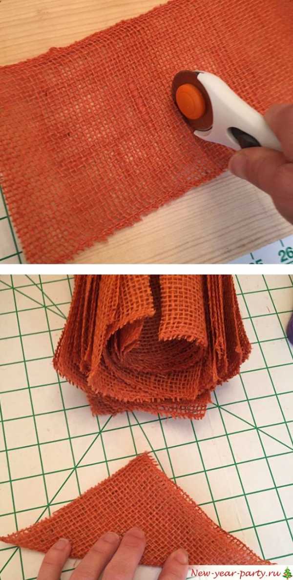 - Прекрасный, фактурный податливый материал – мешковину, режем на квадратики со стороной 15 – 20 см.
