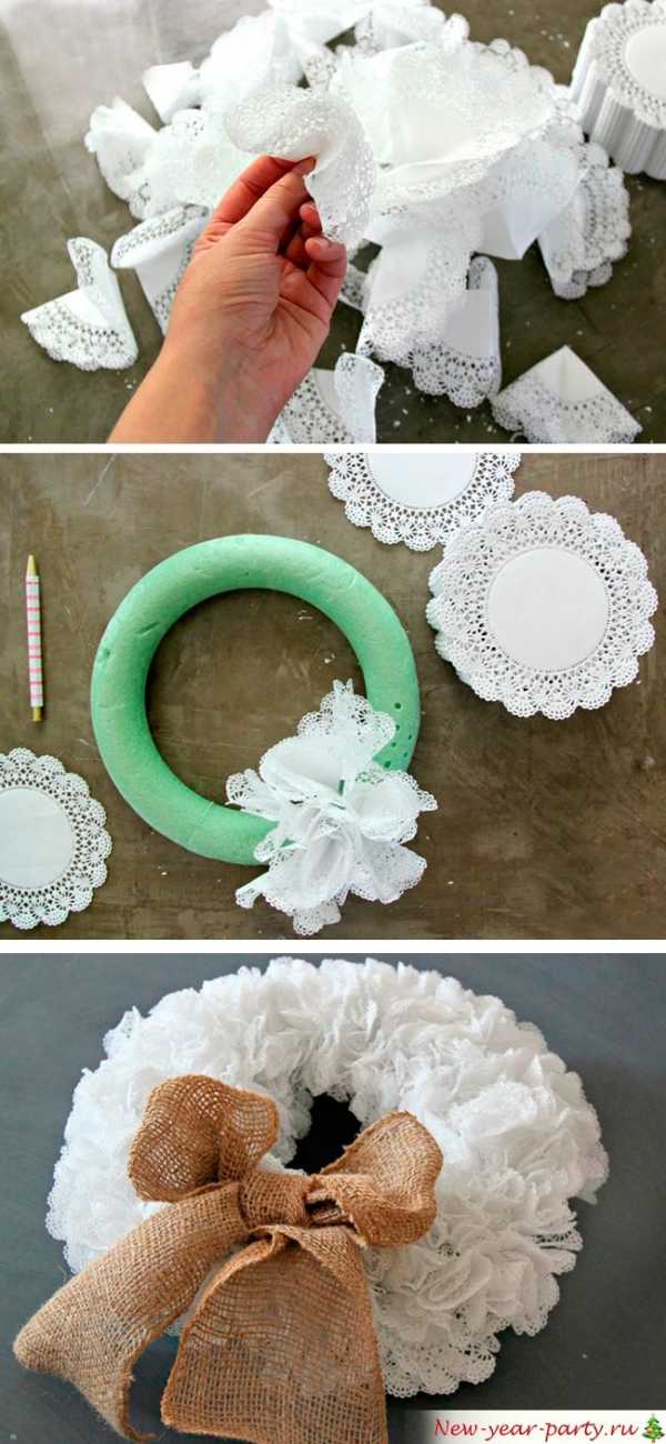 На детский праздник позовут ажурные веночки-снежинки, мастерски изготовленные из салфеток.