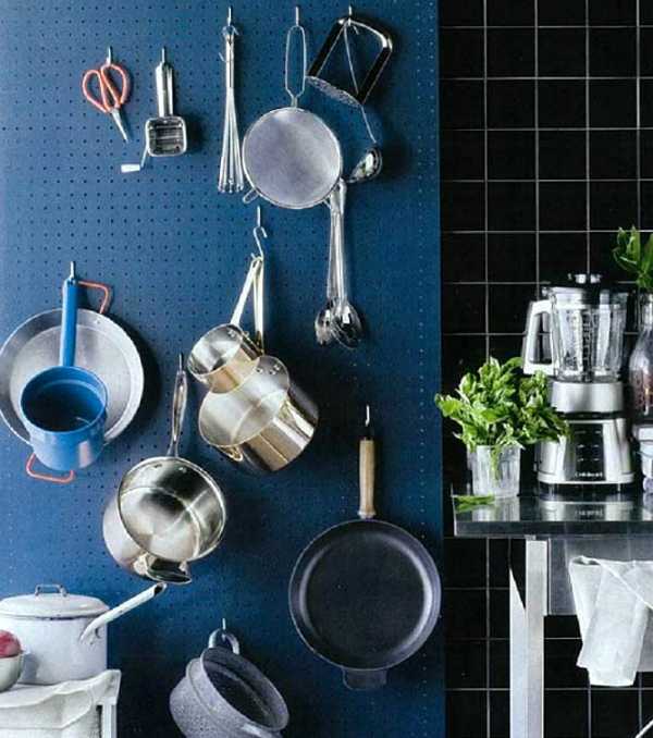 Подвесьте кастрюли и сковородки над плитой или в другом месте с помощью перекладины с крючками. Всё необходимое всегда будет у вас под рукой.