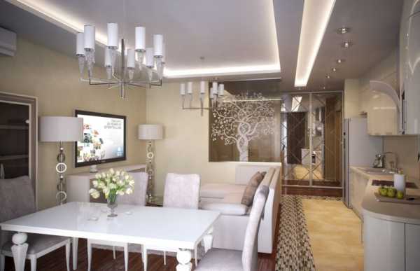 Освещение – еще один способ для отделения зоны кухни от зоны гостиной. К примеру, в сегменте приготовления еды вы установите точечные светильники, а в зоне отдыха и приема гостей – нарядную люстру.