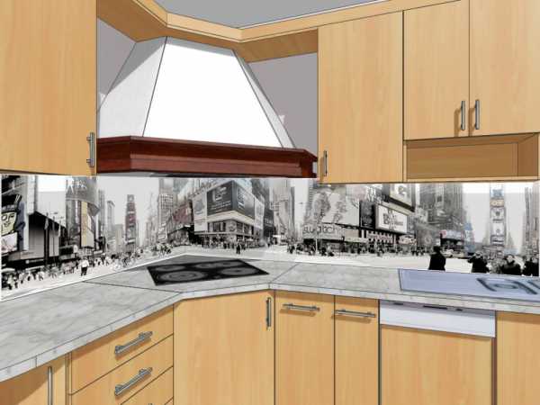 Кухонный фартук можно отделать какой-либо необычной плиткой. Но полную неповторимость дизайна он обретёт после технологии под названием «фотопластификация». Этот способ декора позволит оформить стены широкоформатными картинами в самом высоком разрешении. После того как между основой из алюминия и оргстеклом эти картины запаяны, получается фотография, которая полностью защищена от воздействия внешних факторов.