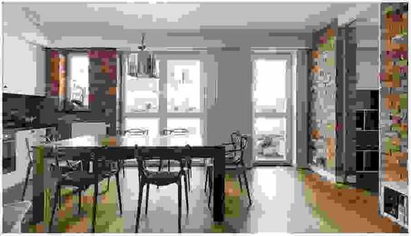 Оригинальное сочетание разноплановых стульев с раскладным столом
