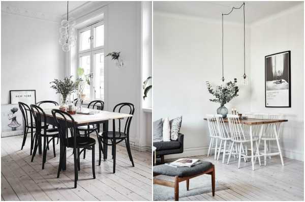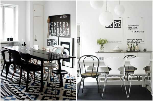 Один из трендов, которые активно используются в интерьерах, — некомплектные стол и стулья. Однако не стоит думать, что первый попавшийся стул будет стилистически интересно смотреться с вашим столом. Подберите сбалансированный вариант — и добьетесь элегантного и стильного вида, переборщите — и зона столовой будет выглядеть нелепо.