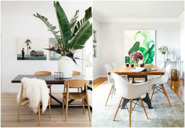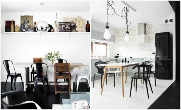 Еще одна идея, которая нам очень по душе, — мебельные миксы из стульев. Так каждый член семьи сможет выбрать себе любимый стул, а вместе вся композиция будет смотреться живо и необычно.