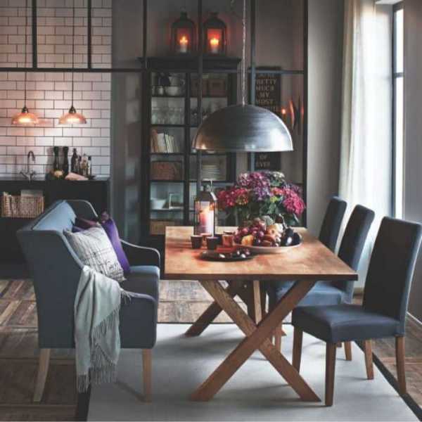 Если вы меняете старый гарнитур, можно пойти дальше и попробовать совсем новый подход. Например, заменить стулья скамьями или сочетать скамьи и стулья вокруг одного стола. Это создаст атмосферу пикника или приморского городка. Стулья с одной или двух сторон от стола также можно заменить диванчиками.