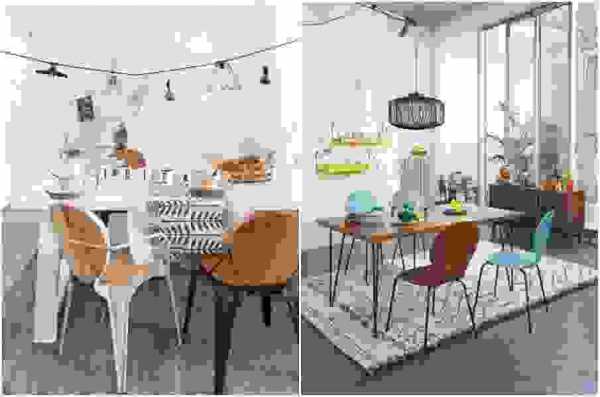 Единство формы даёт возможность объединить непохожие по цвету или стилю стулья и стол.