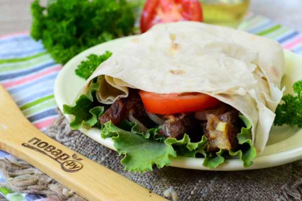 Жарим кусочками любое мясо, рыбу или птицу. Добавляем промытые и нарезанные овощи, лук, любимый соус. Заворачиваем все в лаваш и – готово! Сытный бутерброд с мясом и овощами удобно взять не только на работу, но и на пикник или в поездку.