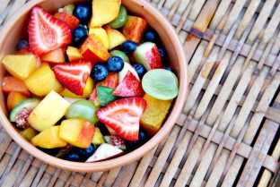 На обед беру белок (куриная грудка, нежирная говядина) + медленные углеводы (бурый рис, гречка, цельнозерновые макароны и т.д) + салат (помидоры, огурцы, перец, лук, зелень). Часто отварные яйца в качестве дополнения к обеду, если нет гарнира. В качестве перекусов – яблоки, груши, банан, нектарины, виноград, персик, ягоды, йогурт, творог, кефир. хлебцы Dr.Korner, орешки… Фрукты ем как в целом виде, так и в виде салата с йогуртом или творогом. Иногда делаю «бутерброд» из хлебца+творога+фруктов/ягод.
