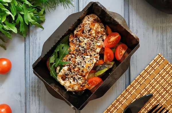 Запечь грудку можно непосредственно во время сборов на работу или учебу: натереть специями по вкусу, сбрызнуть маслом и отправить запекаться на полчаса при 180 градусах. В качестве подушки подойдет овощной салат, а если нет времени его готовить — нарежьте огурцы, сбрызните их соусом вроде унаги с кунжутом (сладко-соленым) и уложите в коробочку вместе с несколькими ломтиками сыра сулугуни.