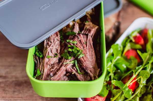 Рекомендуем паковать всё сразу, чтобы получился мясной салат. Ранее мы рассказывали о похожей подаче стейка, только в этот раз советуем добавить немного авокадо и орехов по вкусу. Приготовьте стейк на сковороде за считаные минуты или возьмите кусочек запеченной говядины, нарезанный на удобные кусочки.