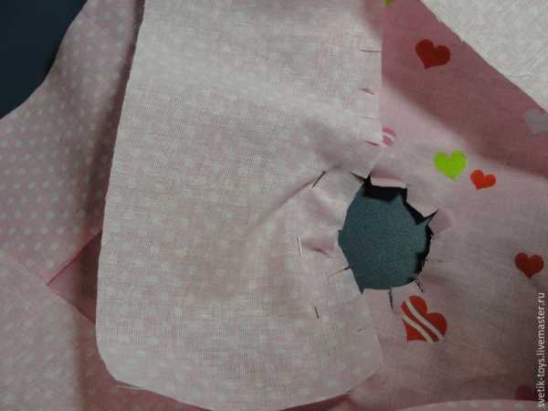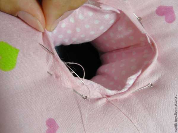 * Обратите внимание, — концы боковинок мы не сшиваем, — через это отверстие потом будем выворачивать и набивать нашу буковку.