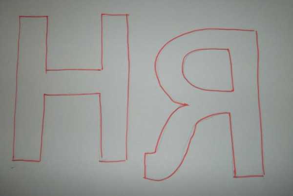- Нарисуйте букву на картоне желаемого размера, затем вырежьте её в 2х экземплярах.
