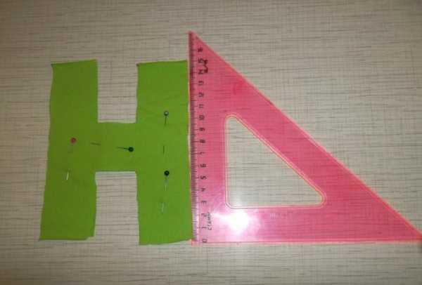 1. Переносим на изнанку ткани выкройку буквы, ширину боковинки я взяла 6см, для того чтобы наша буковка устойчиво стояла на «ногах» и обладала приятной пухлостью. Припуски на швы 0,5-0,7см