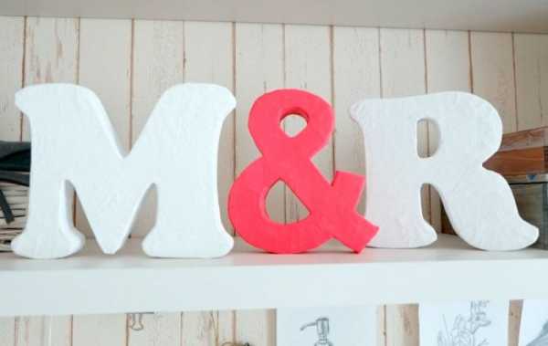 - Буквы можно поставить на полку, повесить на стену, даже положить на пол, если их размер позволяет. Применяют отдельные символы и целые слова, например «любовь», «семья», «дети», «радость», «счастье», а также имена.