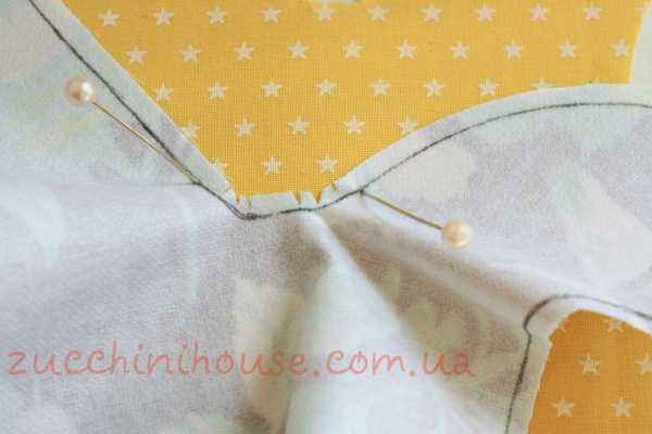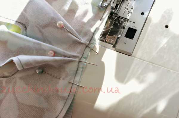 На боковой части делаем надрезы, закалываем булавками и зашиваем потайным швом.