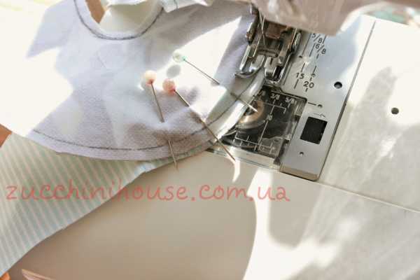 Это очень удобно делать если ткань боковинок в полоску, клеточку, горох или другой рисунок, благодаря которому легко на глаз можно определить место для параллельных надсечек.9.Ну и немаловажный момент — начать пришивать вторую половинку буквы строго в том же месте, откуда к боковинке пришивалась и первая.