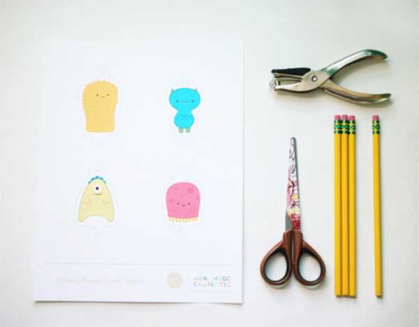 Скачать и распечатать шаблон. Вырезать каждого монстрика вдоль пунктирной линии.