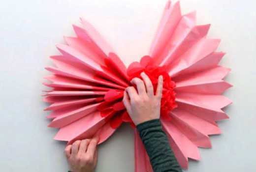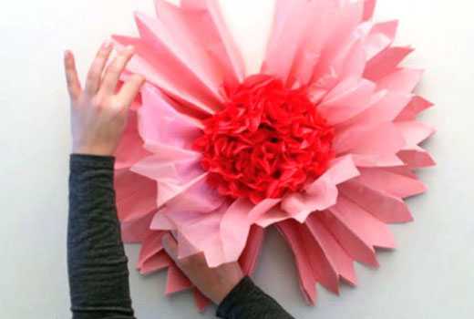 Совет: такие бумажные цветы можно использовать не только для украшения подарков, но и как декоративные элементы при оформлении помещений для торжеств.