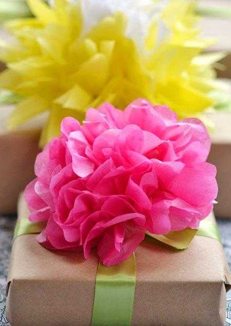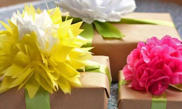 Как сделать цветы для оформления подарков из оберточной бумаги / Я