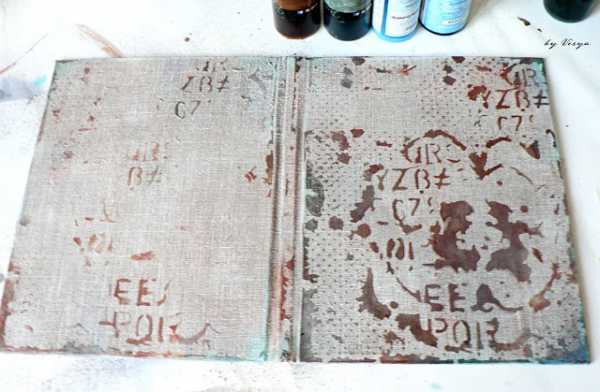 Следующим шагом была тонировка всей обложки разведенным водой черным