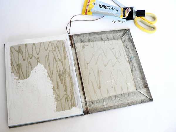 кисть, и сухой кистью забеливаю ткань обложки. Кисть с грунтом