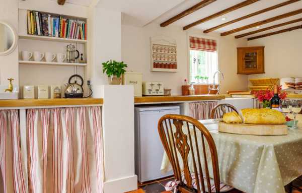 Деревянный гарнитур может стать основой «деревенской» кухни, если поставить на видное место глиняный кувшин, повесить льняные занавески и застелить стол лоскутной скатертью. Тот же гарнитур в компании текстиля с цветочным принтом, розмарина в горшке и белых тарелочек с розами станет прованским.