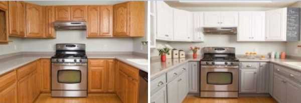 Как показывают представленные фото, после подобной переделки гарнитур обретает второе дыхание и выглядит просто потрясающе. Чтобы усилить эффект, вы можете купить пленку в двух расцветках и использовать ее для декора верхних и нижних шкафчиков.