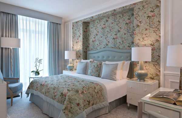 Нежный цветочный узор на обоях в спальне