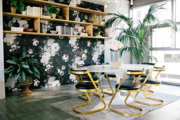 Стиль минимализм также не отрицает наличия цветочного принта, но несколько ограничивает его расцветки и комбинации. Например, минималистская столовая может иметь вертикальную цветочную полосу в обеденной зоне.