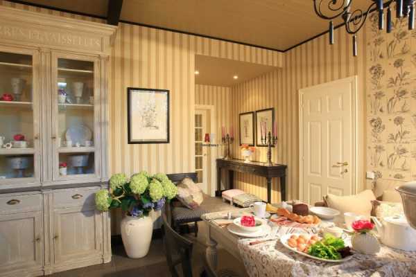 Интерьер в стиле прованс является классическим вариантом применения узоров с мелкими цветочкамиОтделка стен обоями с маками